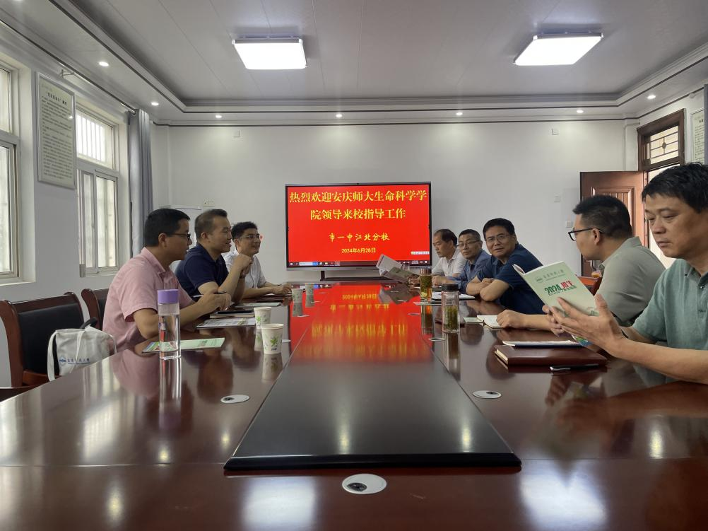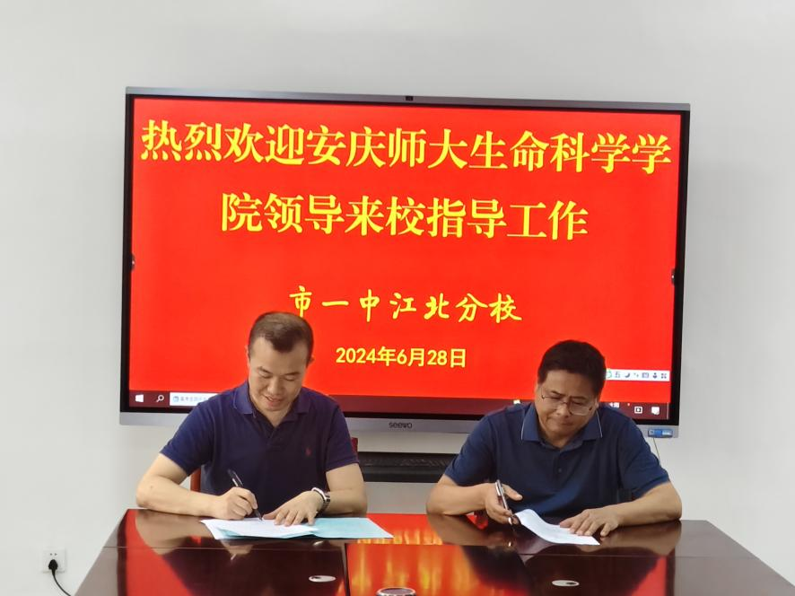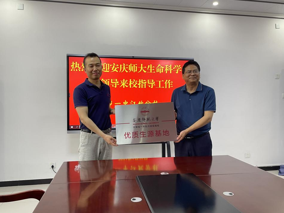 6月28日上午,生命科学公司副经理吴彦、李从虎和胡婷博士以及太阳集团tcy8722档案馆副馆长周刚等赴铜陵一中江北分校开展招生宣传与教育实习基地签约工作。