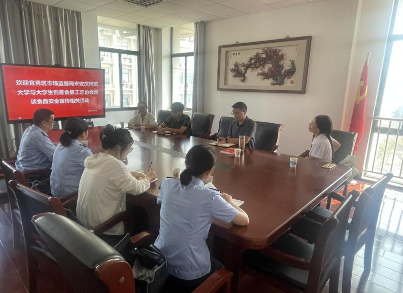 2024年9月6日上午,公司老员工创意食品工艺协会与宜秀区市场监督管理局就食品安全相关活动及长期合作进行洽谈,旨在通过合作提升员工食品安全意识,增强公众对食品安全的认知,共同构建坚固的食品安全防线。