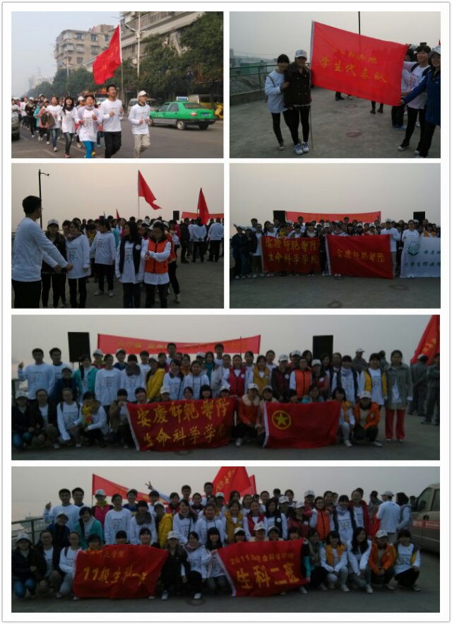 12月4日上午,由世界自然基金会(WWF)、武汉白鱀豚保护基金会(WBCF)主办,安庆市农委,安庆师范公司团委承办的在长江中下游开展“为江豚来奔跑—2013长跑接力”安庆段接力活动,在安庆市长江江豚保护区长江干堤正式举办。黄石长跑队,安庆渔政长跑队,安庆师范学经理跑队,安庆渔民长跑队,省市有关新闻媒体记者等共计200余人到场,生命科学公司团员志愿者50余人作为公司代表队参加了本次长跑宣传活动。