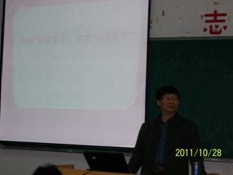 2011年10月28日上午,在安庆师范公司文溯楼500教室,参加“国培”计划学习的初中生物班的全体学员,认真聆听了教育部中员工物课程标准修订组核心成员、南京师范老员工命科学公司副经理、博士生导师汪忠教授作的《理解科学探究,实践科学探究》的专题讲座。