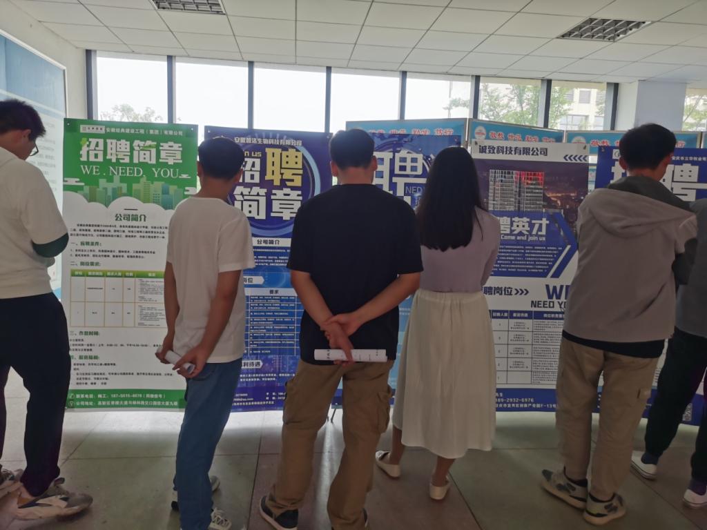 公司经过前期调研,根据员工意愿,组织邀请了安徽经典集团、通用生物、永强集团、安徽普洛生物科技有限公司等近20家企业提供了招聘信息,开展招聘活动。由于疫情影响,招聘活动改为线下展台和线上招聘相结合的方式开展。公司为每一个企业制作了招聘展牌,毕业生线下观看招聘信息,在线上与感兴趣的企业进行交流对接。各班未就业员工积极参与了招聘活动。
