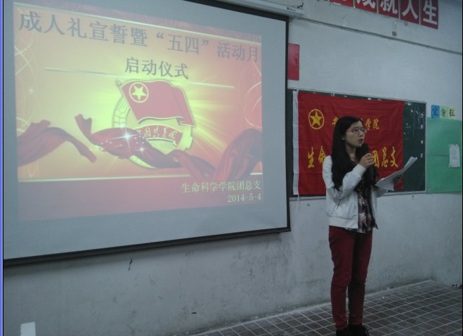 5月4日中午,生命科学公司纪念“五·四”运动95周年暨18岁成人礼宣誓仪式在菱湖校区教学楼208举行。公司团总支,全体专职辅导员,七十余名员工代表参加此次活动。