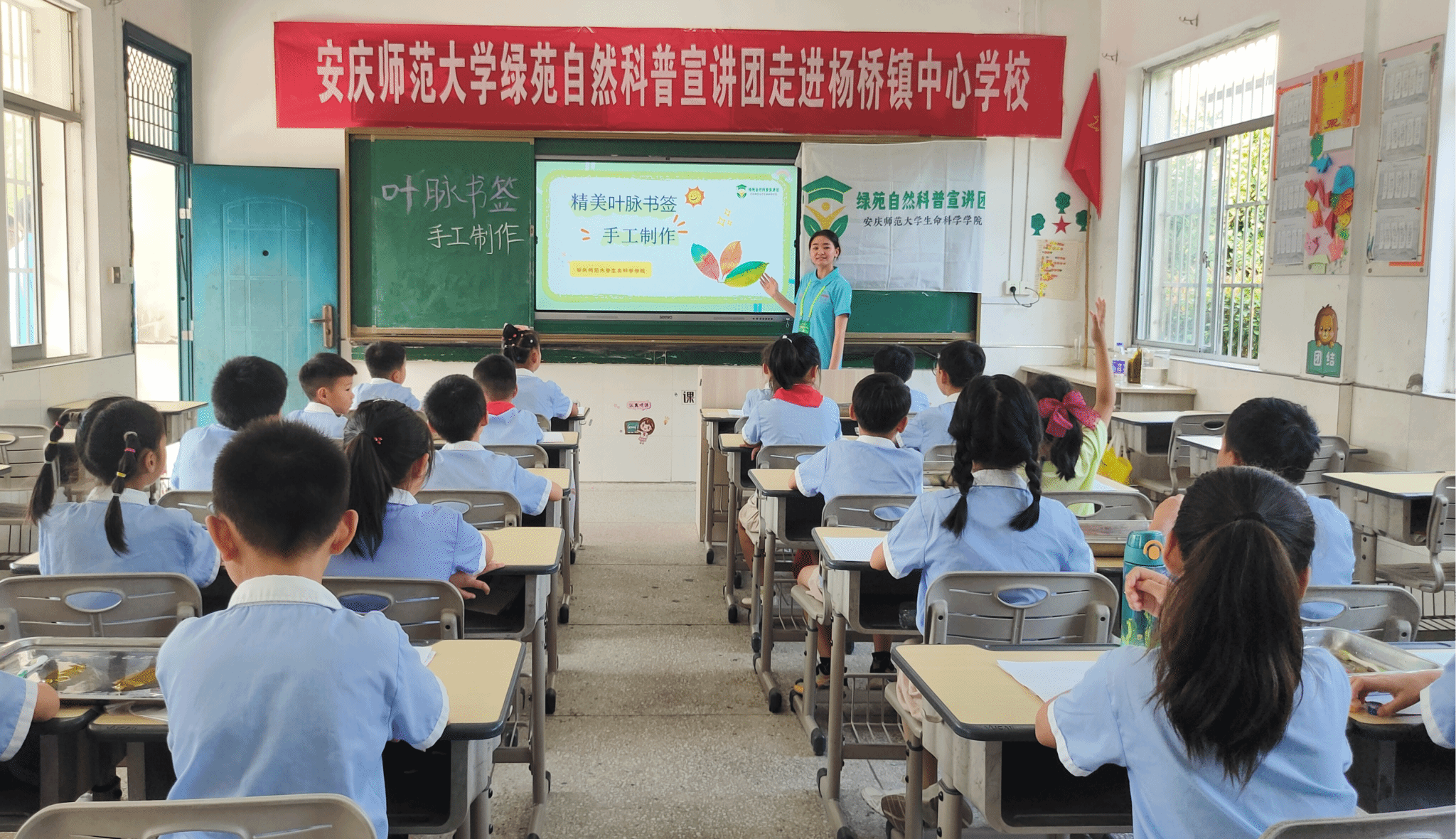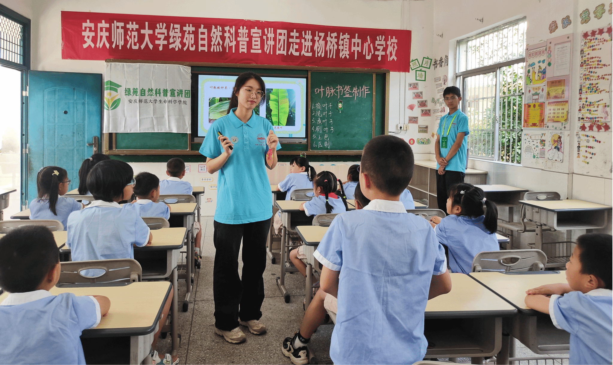 煮好叶片、刷去叶肉、压干水分、绘制图案……科普团成员将叶脉画的制作技术带入校园,让孩子们也能动手操作,亲身体验自然的神奇“魔法”。