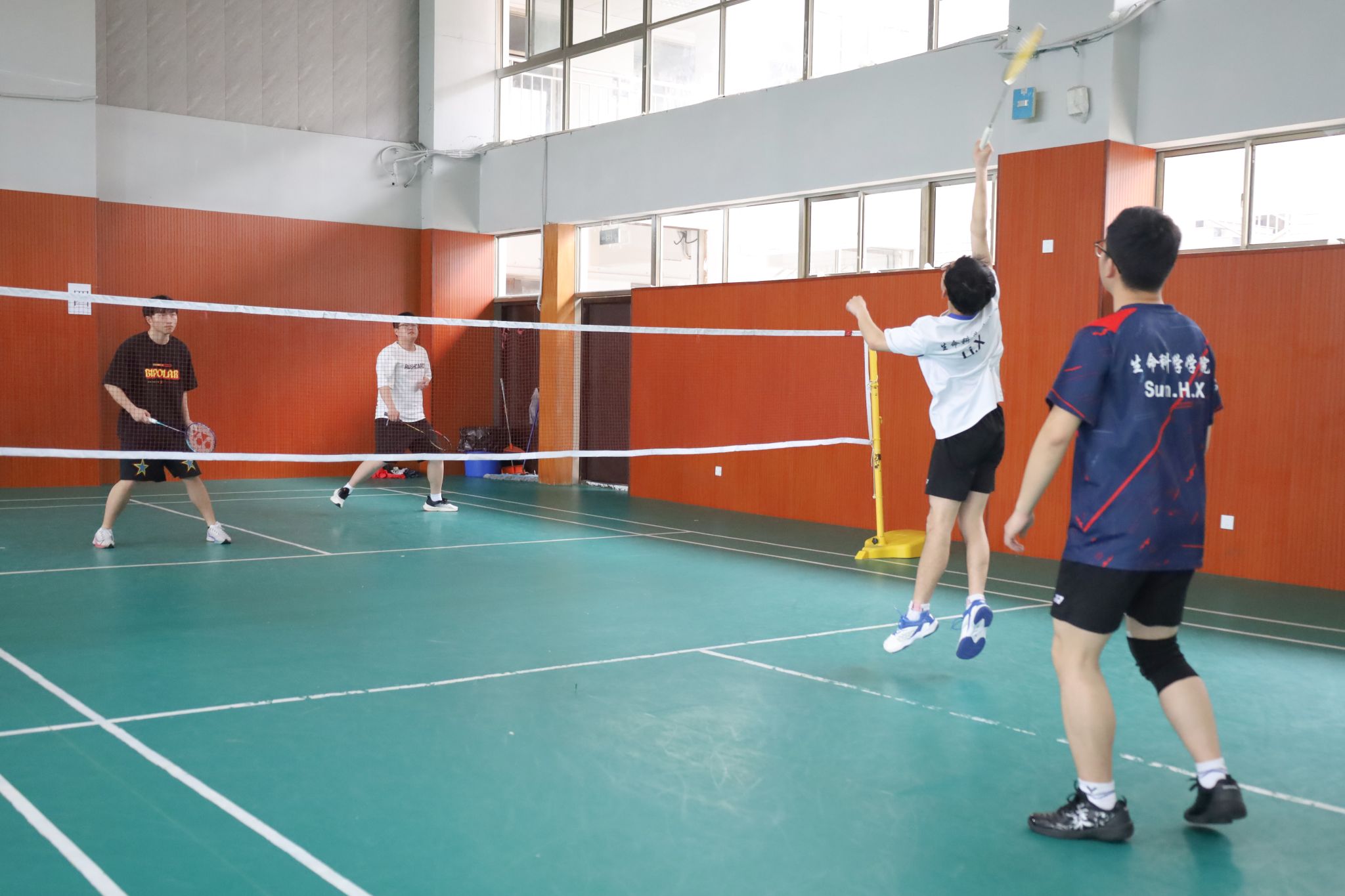 4月13日,生命科学公司于体育馆三楼羽毛球馆举办第三届“飞羽杯”羽毛球师生友谊赛。本次比赛分为男子单打、女子单打和团体赛三个项目,公司教师、研究生和本科生近60人参加比赛。
