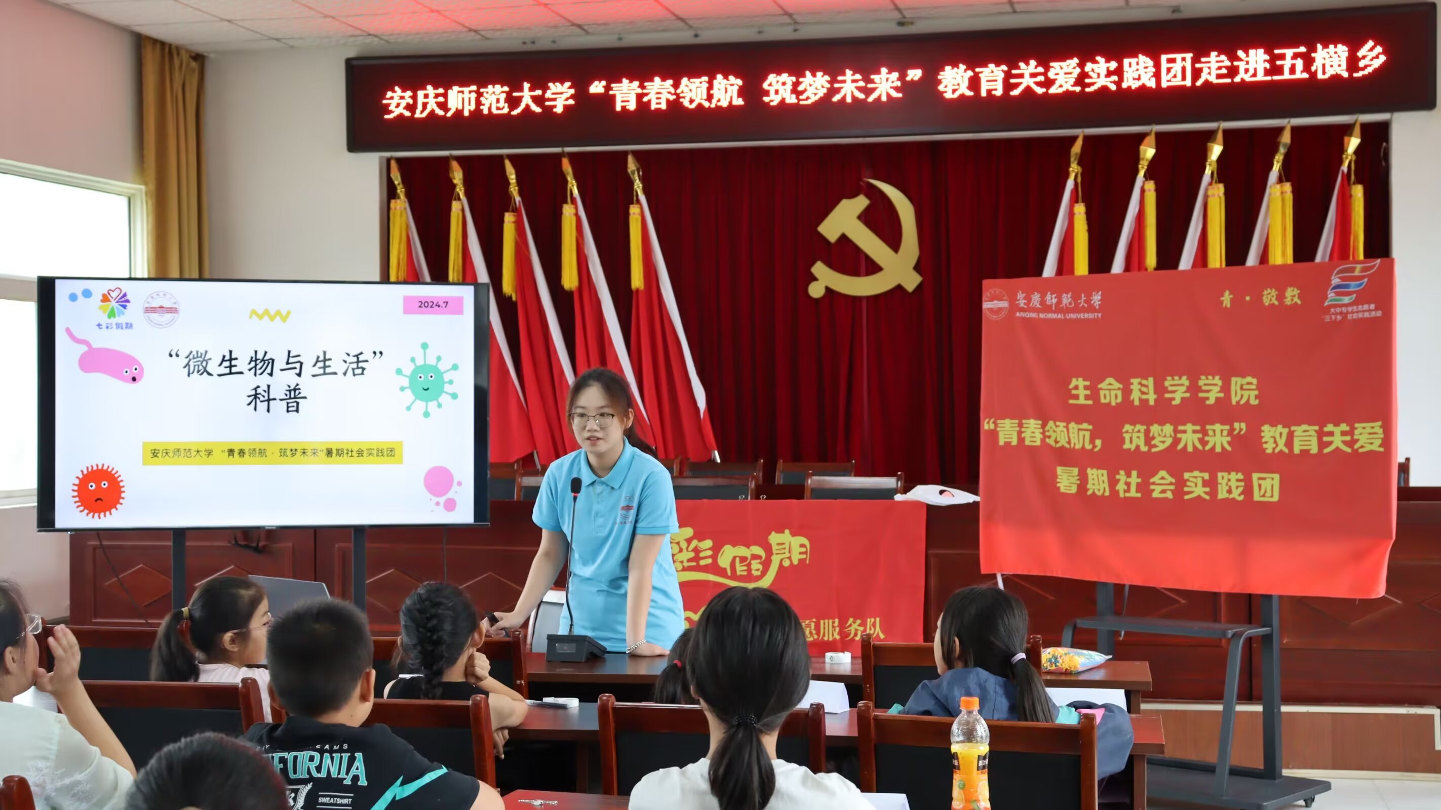 近日,生命科学公司“七彩假期”志愿服务队前往安庆市五横乡中心小学开展为期10天的教育关爱实践活动。成员们立足专业特色,开展思想引领、科学教育、创意手工、知识讲堂、美育养成活动,为50余名小员工带去丰富的文化知识体验,筑梦孩子们的七彩童年。