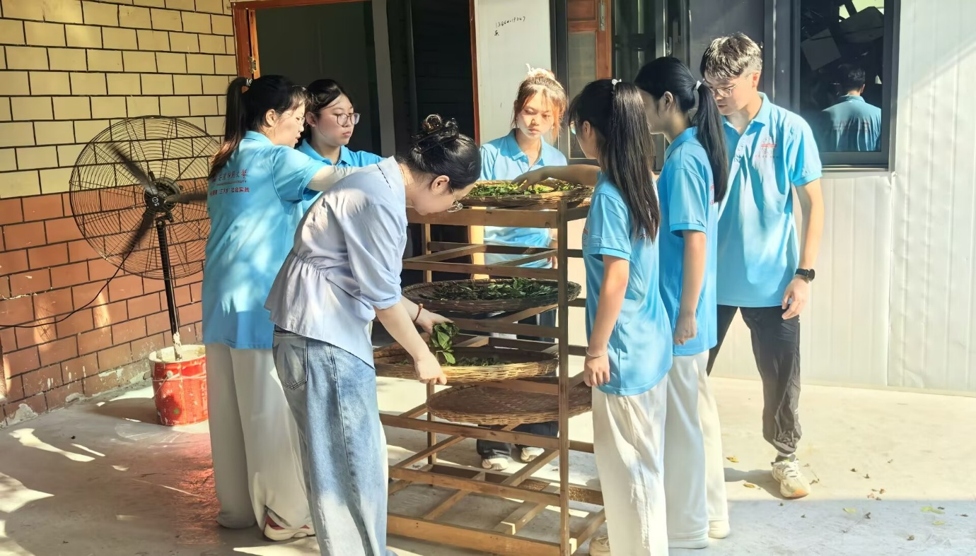 2025年7月7日至14日,“寻访乡村故里,擎画振兴蓝图”暑期社会实践团在科技小院进行“宜秀红”的制作。团队特意挑选品相上乘的龙山野茶,为龙城幼儿园“小小茶艺师”课堂储备“鲜活教材”,确保每片茶叶都成为孩子们触摸传统、品味科学的最好媒介。