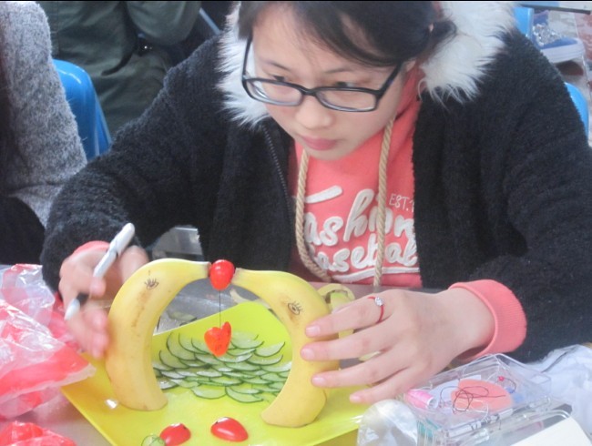 为丰富老员工在校生活,锻炼员工的动手能力,培养想象力, 3月19日下午,生命科学公司团总支员工会在敬敷食堂举办了第六届水果拼盘大PK活动。比赛过程中,选手们依靠丰富的想象力,细致而有创意的手艺制作了一个个精美的拼盘,并依次上台介绍作品的寓意,选手们精美的拼盘以及生动的解说,赢得了阵阵掌声。其中题为“海底世界”的作品以两支香蕉摆出两只海豚状,并用多种水果摆出海底场景,撒上食用亮粉,让评委眼前为之一亮。最终,通过现场投票,作品“海底世界”获得冠军。通过举办本次活动,展现了同学们的风采,加强了同学们之间的交流,展现了同学们个性、创新、主动思考及积极向上的精神风貌。(曹勇)