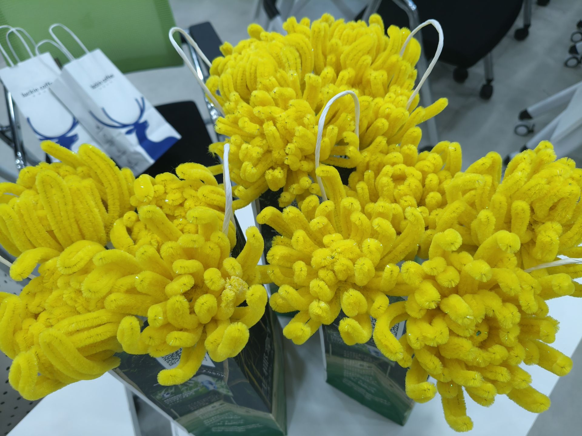 活动现场,负责人简述清明、烈士纪念日意义,强调活动庄重肃穆,并分发扭扭棒、胶水等材料。员工们统一观看制作视频,学习手工花制作技巧,从裁剪、塑形到组装,每一个步骤都亲身参与。