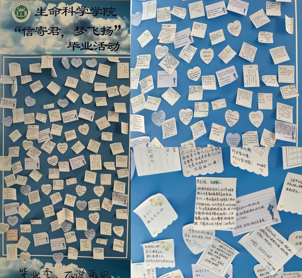 “试炼的终点是花开万里”“愿你们不彷徨不迷茫”“祝学长学姐们前程似锦,未来可期”……展牌上贴满了各式各样的便利贴。5月17日至22日,生命科学公司举办“信寄君,梦飞扬”活动,陆续有四百余名公司员工为公司毕业生送上自己的暖心祝福。