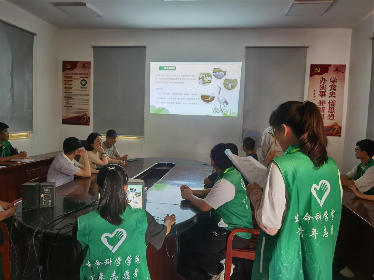 为提高社会公众保护湿地意识,将《中华人民共和国湿地保护法》贯穿于实践中,彰显“绿水青山就是金山银山”理念,助力乡村振兴。6月26日-7月6日,生命科学公司“湿”情画意——“湿地保护法”暑期宣传实践团走访了太阳集团tcy8722、菱湖公园、菜子湖国家湿地公园、破罡湖闸管理所等单位及周边社区,开展以“宣传湿地保护,助力乡村振兴”为主题的“三下乡”实践活动。