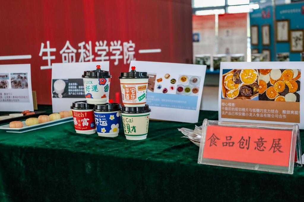 “这是我们实验室选取更加优质的原材料,制作出的改良贡糕。”制作团队成员之一、生物技术专业2020级的岳子阳在现场向员工们介绍展厅中陈列的研制美食。据她介绍,除了选取精制杂粮粉增强软糯清甜的口感,团队还结合传统文化,将贡糕的外形制作成国画中的经典花朵,用新材料让古文化重新“潮”起来。