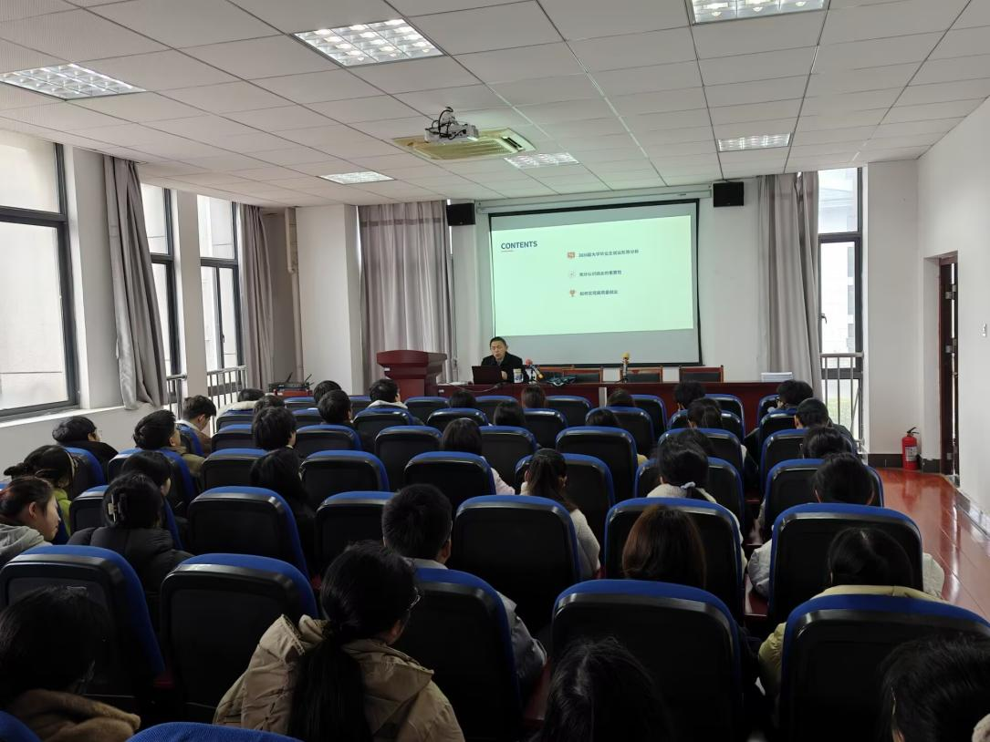 在讲解就业的重要性时,朱昌流从个人、家庭、公司、国家四个维度层层递进。他指出,就业是青年实现经济独立、人格独立和价值追求的“压舱石”,是在实践中锤炼专业技能、沟通协作能力、解决问题能力的“社会大学”,更是将个人才华转化为社会贡献的关键桥梁。他强调,就业直接回应家庭期盼,是增进民生福祉的“暖心工程”;同时,就业质量是检验公司育人成效的“试金石”,是公司博士点立项建设的重要支撑。朱昌流还结合中央经济工作会议、中共中央政治局集体学习及《关于实施就业优先战略促进高质量充分就业的意见》等重要会议和文件精神,深刻阐释了稳就业就是稳经济、稳民生、稳大局,引导毕业生从政治高度认识就业工作的重要性。
