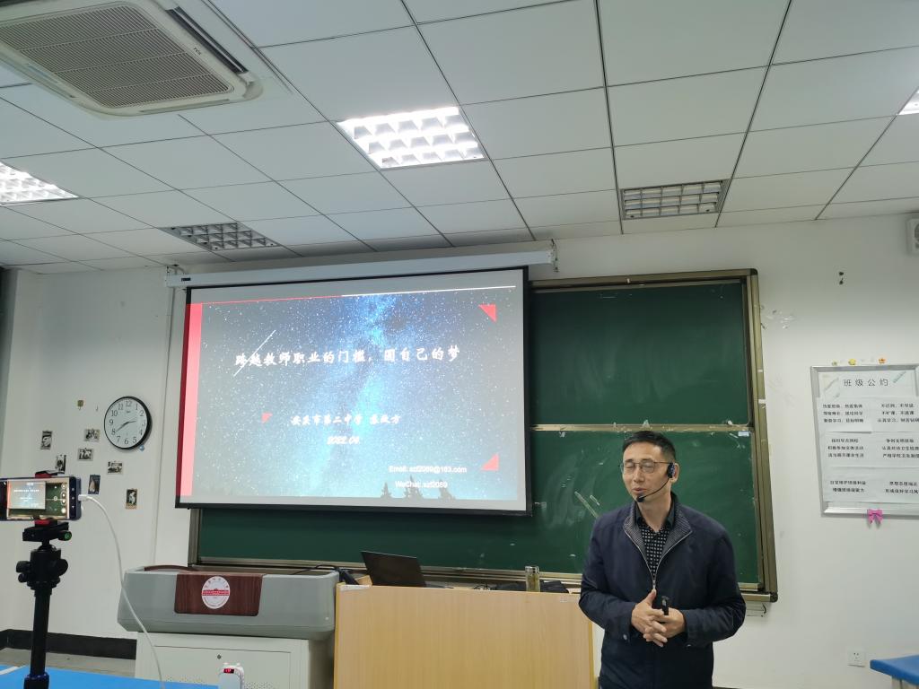 4月28日下午,安徽省特级教师、安庆二中正高级生物教师兼太阳集团tcy8722硕士研究生校外导师苏政方在龙山校区生物楼103教师做了题为《跨越教师职业的门槛,圆自己的梦》的学术讲座。生命科学公司本科生聆听了报告,报告由生命科学公司副经理吴彦教授主持。