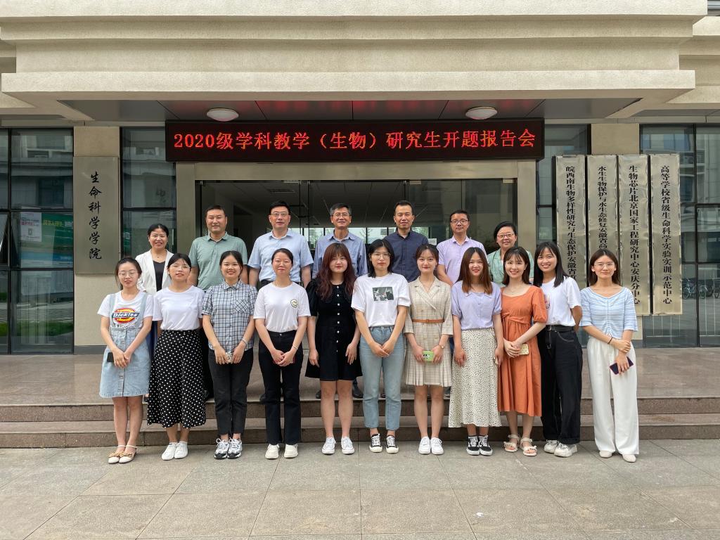 5月28日上午,生命科学公司学科教学(生物)专业2020级11名硕士研究生在G411会议室进行学位论文开题报告会。公司特邀请合肥师范公司生命科学公司经理徐忠东教授担任专家组组长,专家组成员有安庆医药高等专科公司副董事长朱庆丰教授、公司经理周多奇教授、公司副经理吴彦教授、项小燕教授、李从虎副教授,报告会周多奇主持。