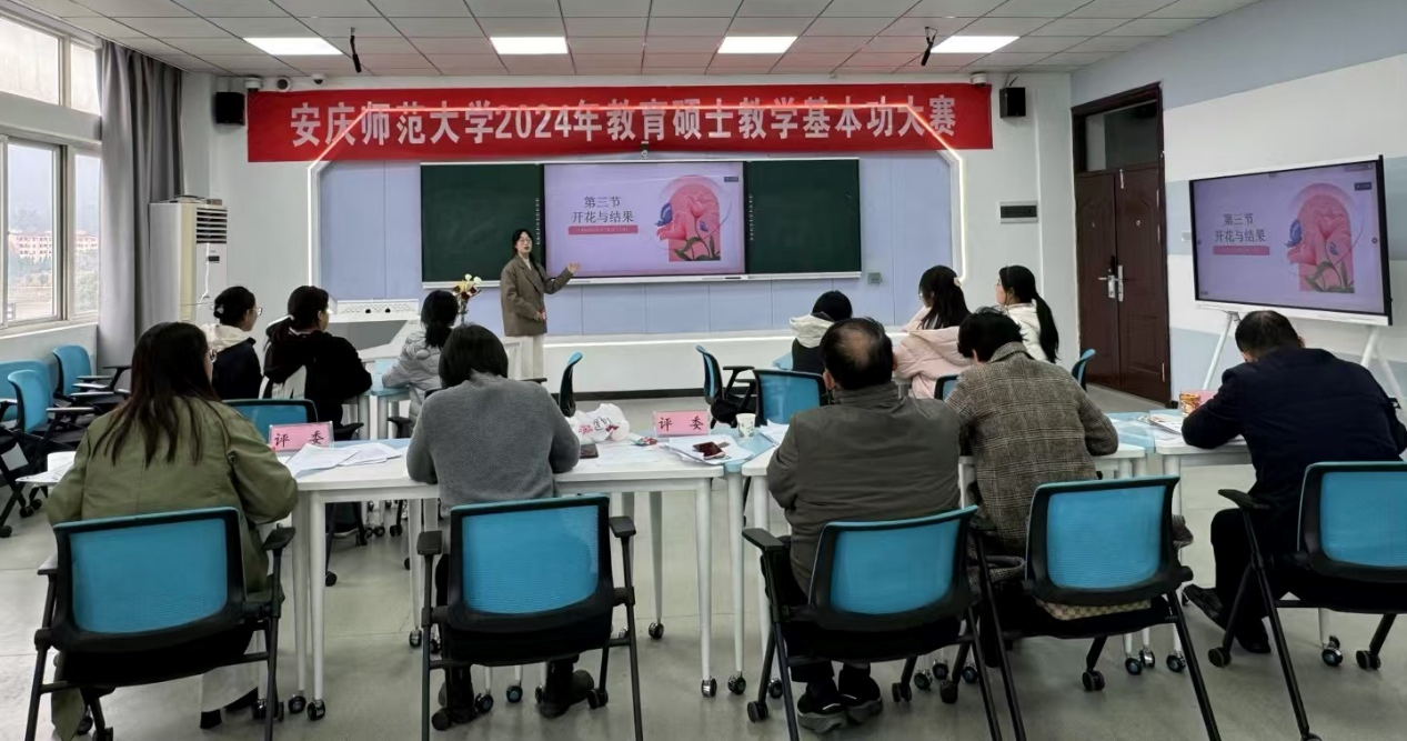 本次大赛旨在提升教育硕士生的公司产品能力。比赛分为三个环节,包括教学设计、课件制作和上课。在模拟授课环节中,刘浩然和汤子琳巧妙融合了传统板书与现代多媒体课件,辅以实物展示和精心制作的手工教学模具,为在场的评委和观众呈现了一场生动的教学演示。