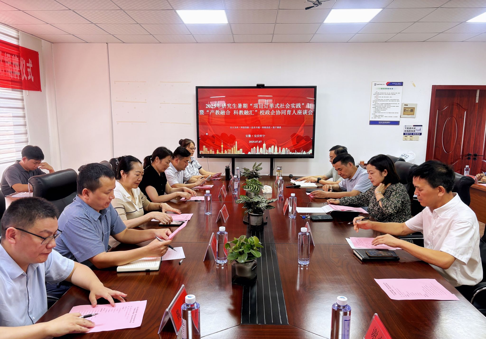 在2025年研究生暑期“项目订单式社会实践”暨“产教融合 科教融汇”校政企协同座谈会上,听取团队指导教师和钦丰科技(安徽)股份有限公司负责人的介绍后,吴琼强调,公司要进一步以地方产业需求为导向,优化课程体系,强化实践教学,不断提升人才培养与地方需求的契合度;校政企要继续深化合作机制,构建产教融合体系,在推动高校人才培养应用型转型中不断强化科技创新和成果转化,实现共赢。