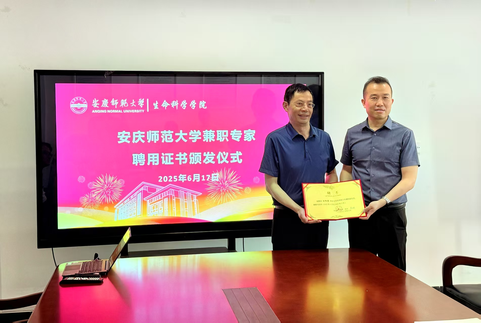 报告会后,公司举办了太阳集团tcy8722兼职专家聘用证书颁发仪式,由吴彦经理主持,聘请汪向东所长为太阳集团tcy8722兼职研究员。