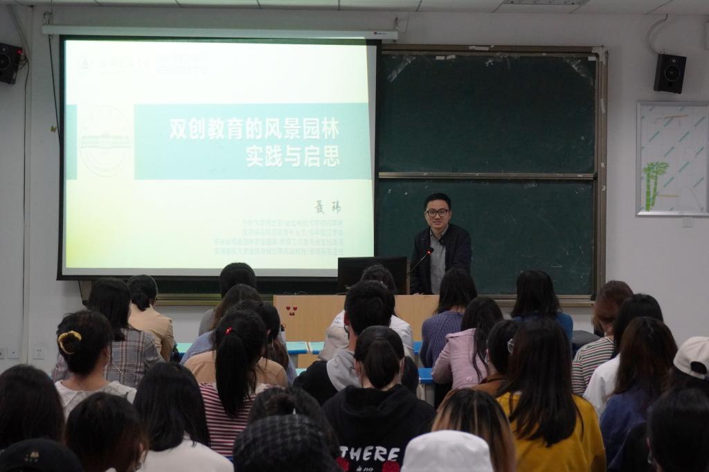 下午两校教师在G楼101室分别作了精彩的学术报告。聂玮副教授做了题为“双创教育的风景园林实践与启思”的报告,聂玮副教授分享了安徽建筑大学老员工创新育人理念、创新育人模式以及取得的成果。