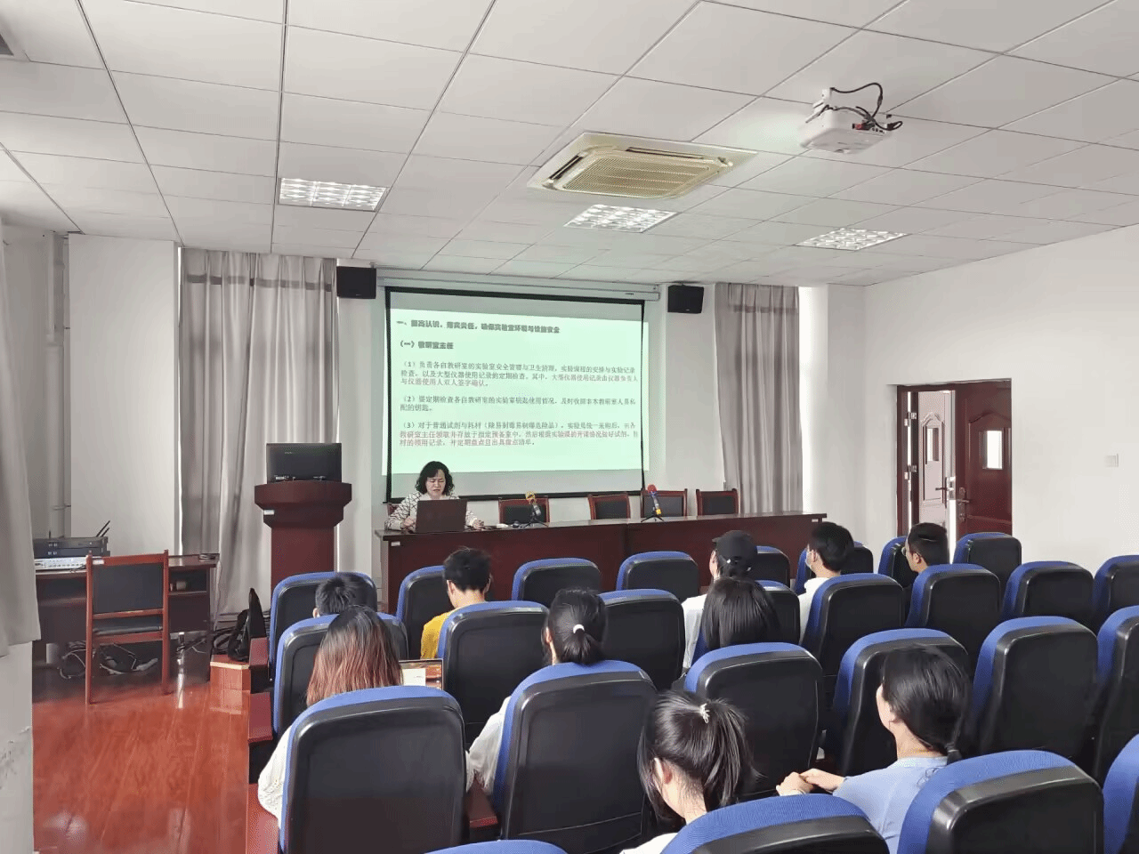 汪老师就危险化学品管理相关事项进行了培训,她强调所有危险化学品使用必须实行审批、采购、入库、领用和处理等全流程管理;各教研室及研究室不得存放剧毒化学品和易制毒化学品;员工在使用危险化学品进行实验前,教师应安排详细的指导,介绍安全操作方法及有关防护知识;使用后剩余的危险化学品,须标明品名、数量,及时交回危险化学品专用库房贮存,并办理存放登记手续;实行六双管理,既“双人保管、双人收发、双人使用、双人运输、双把锁、双本账”等。